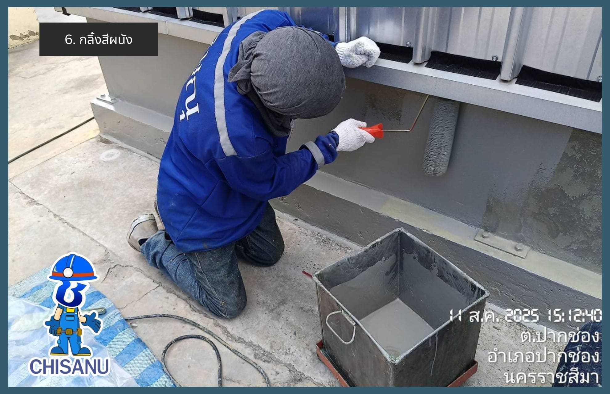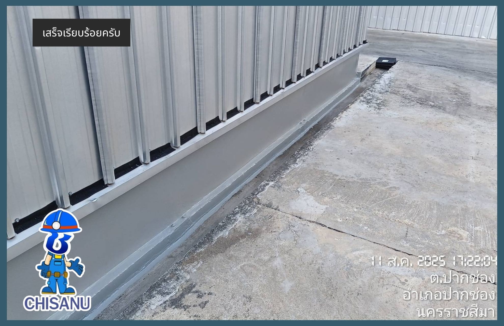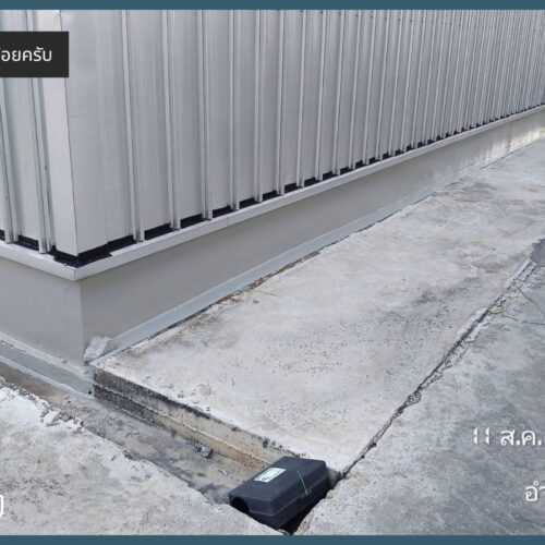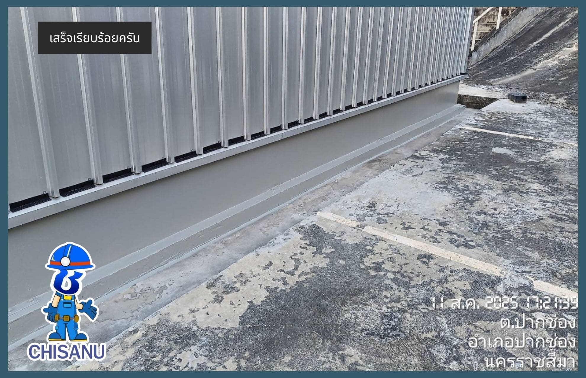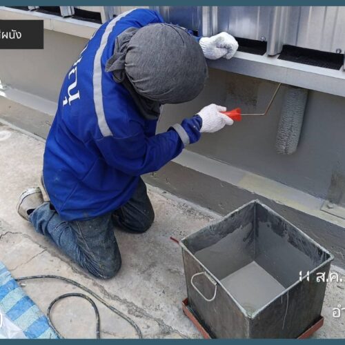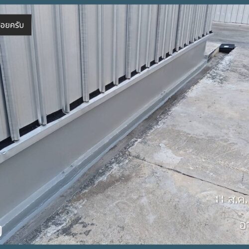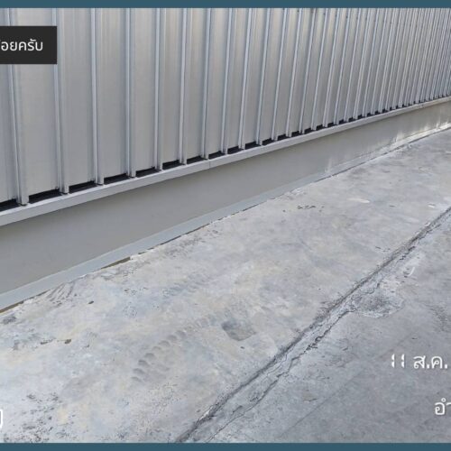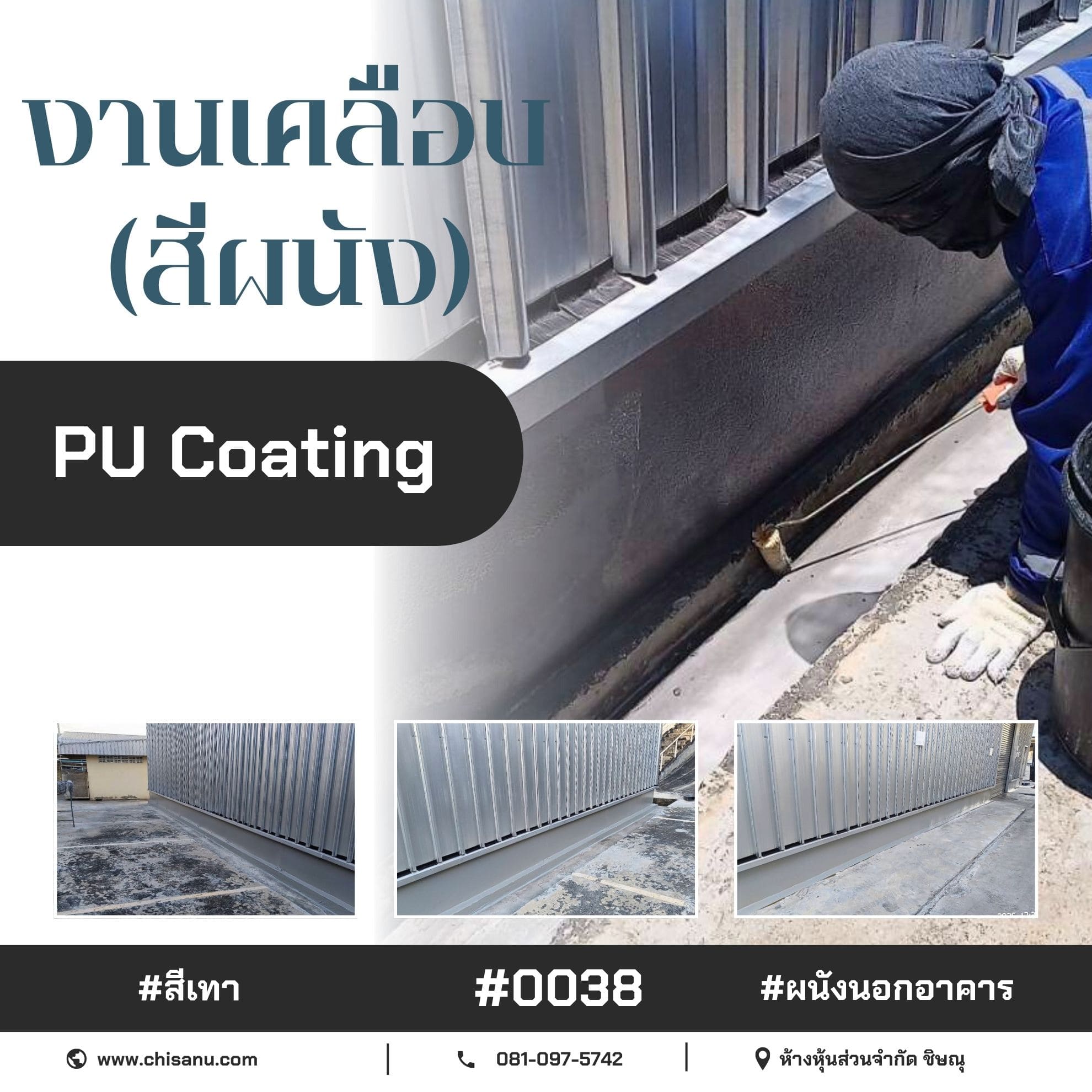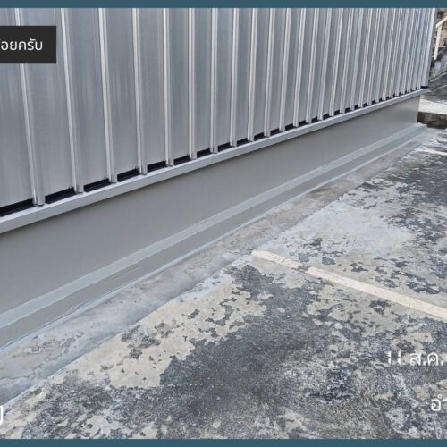 งานเคลือบผนังภายนอกอาคารด้วย PU Coating สีเทา #0038