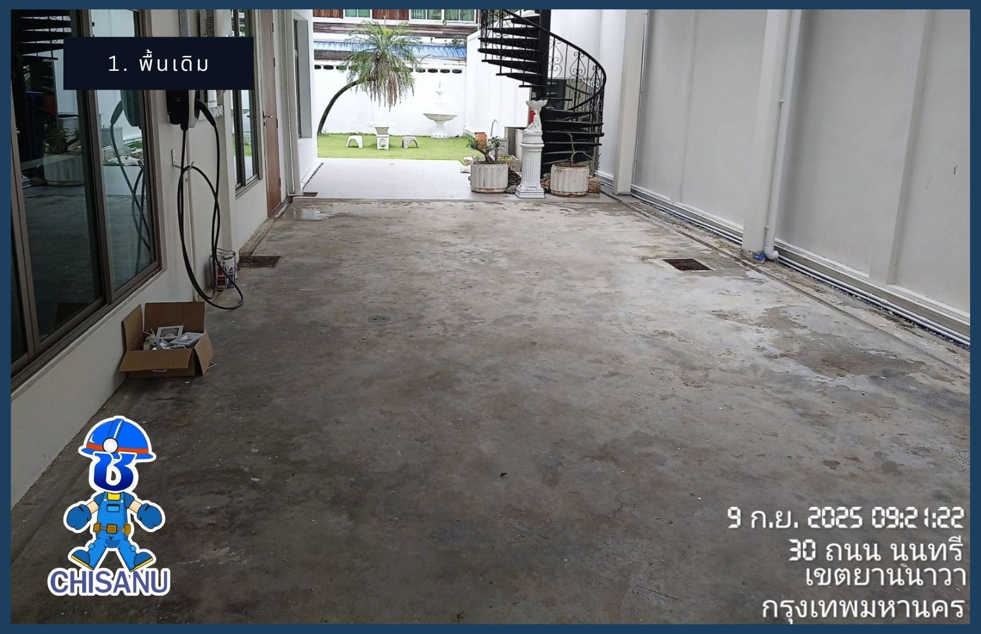 งานซ่อมพื้นด้วย PU Concrete + ฉาบบัว + กลิ้งสีผนัง