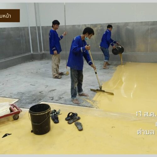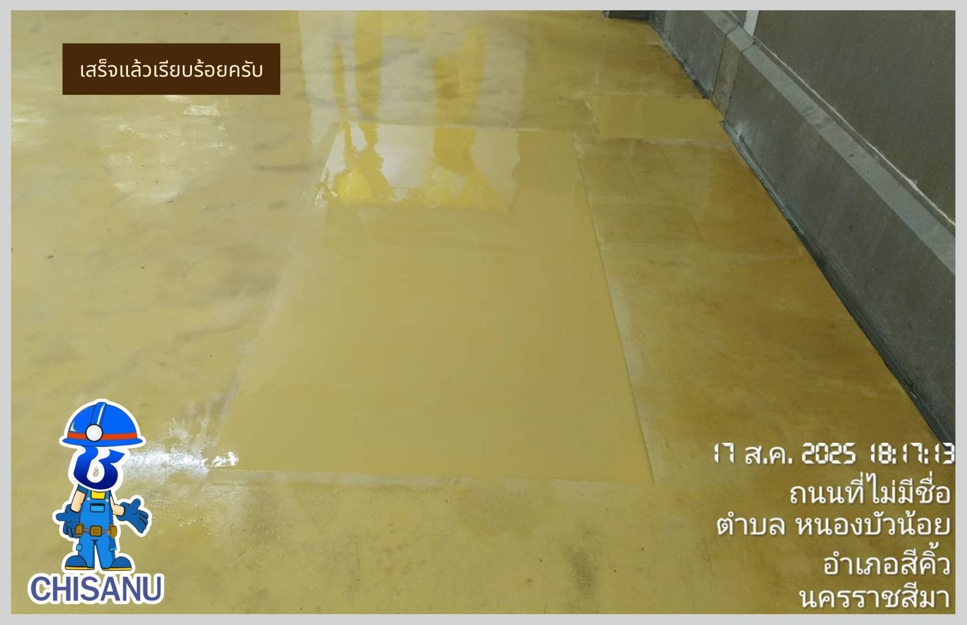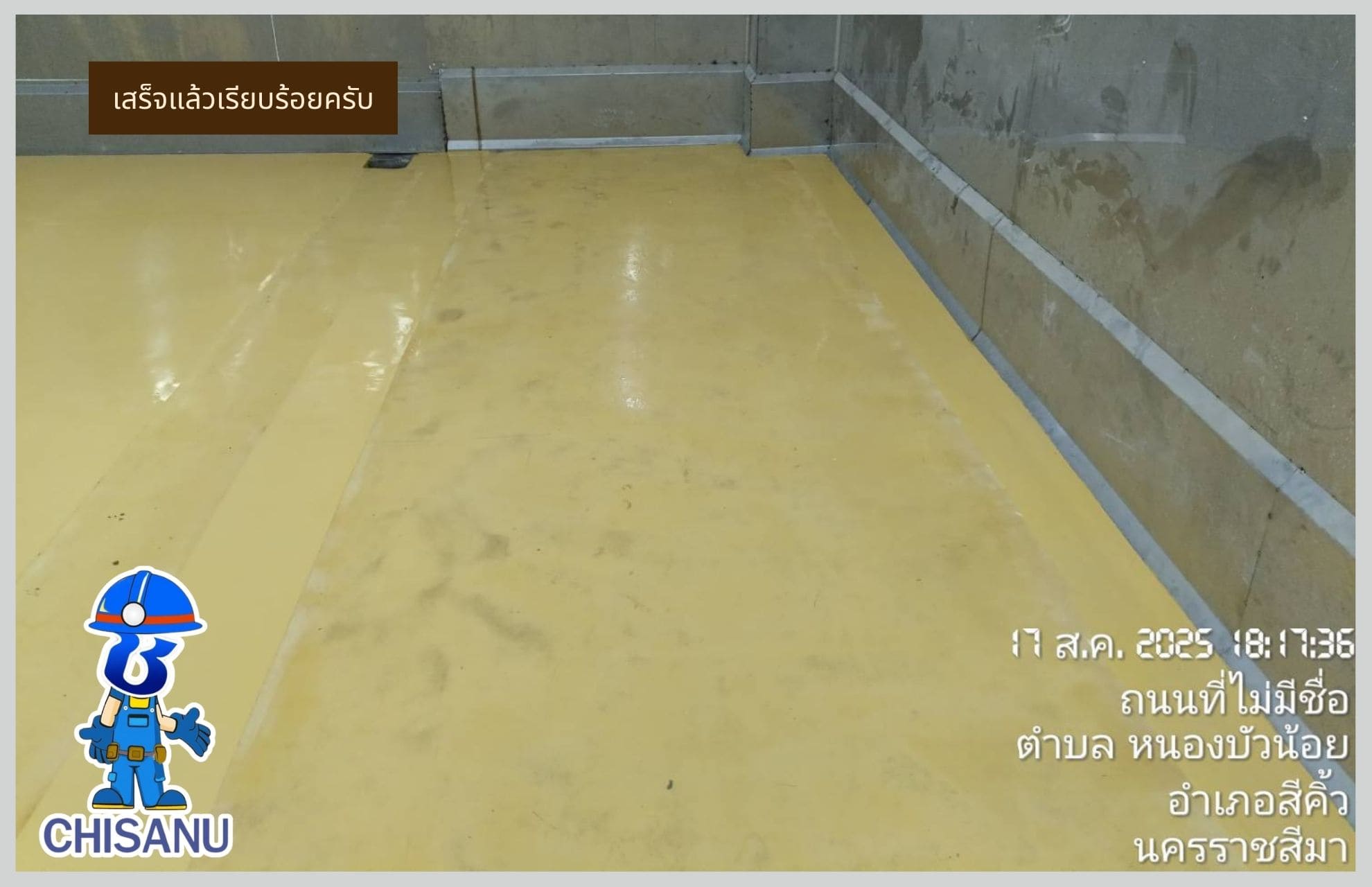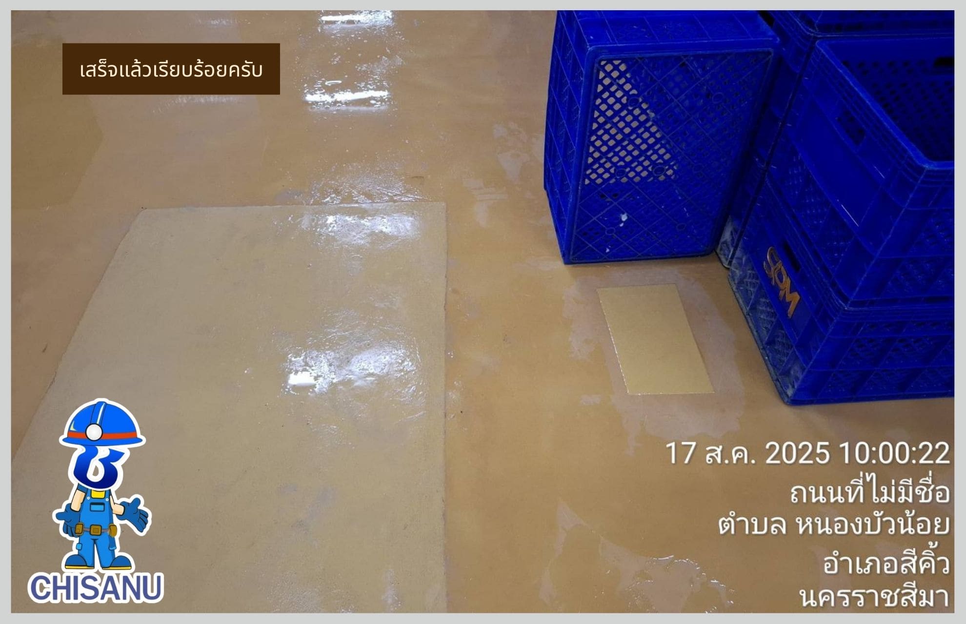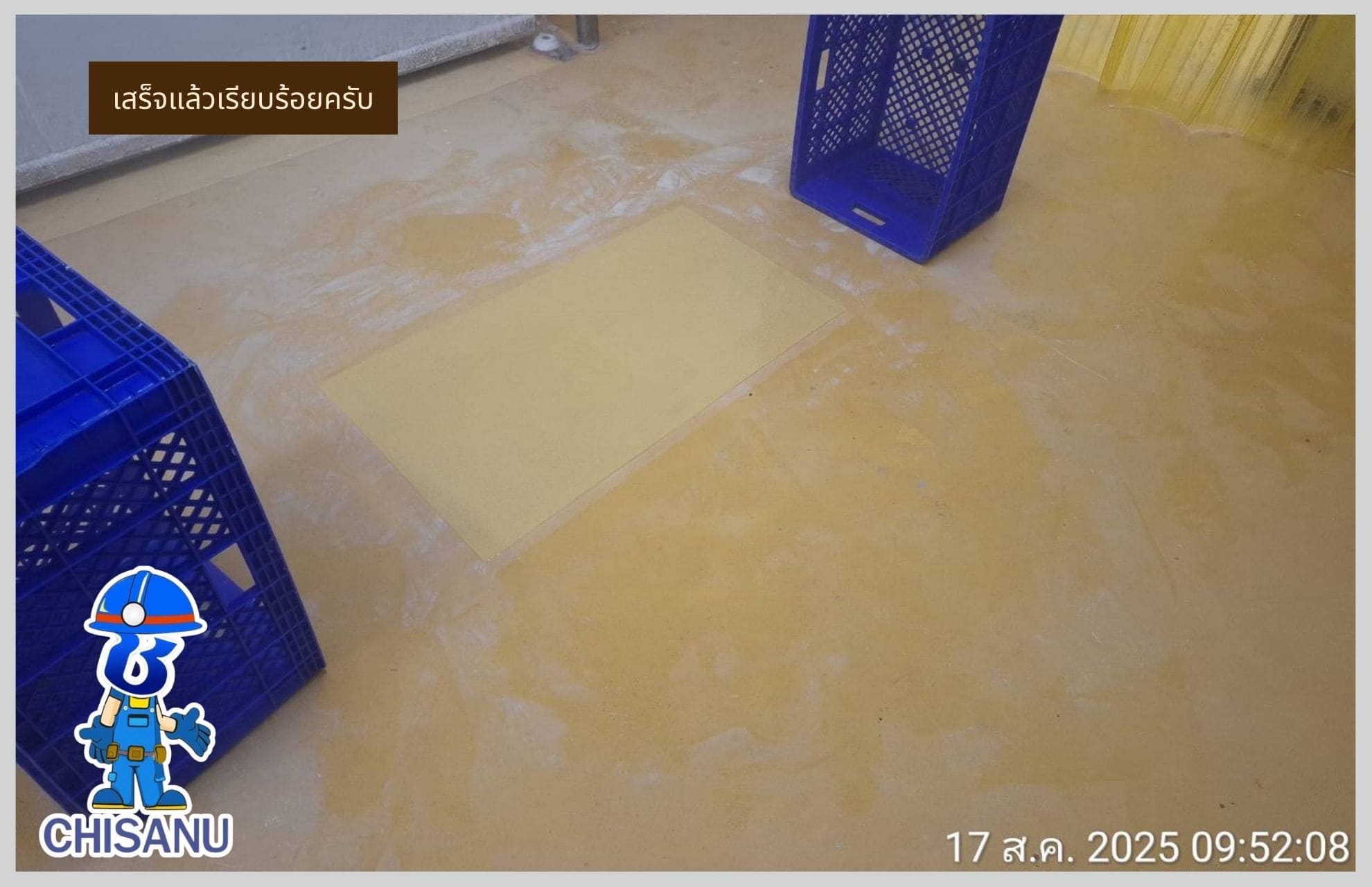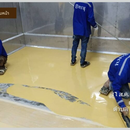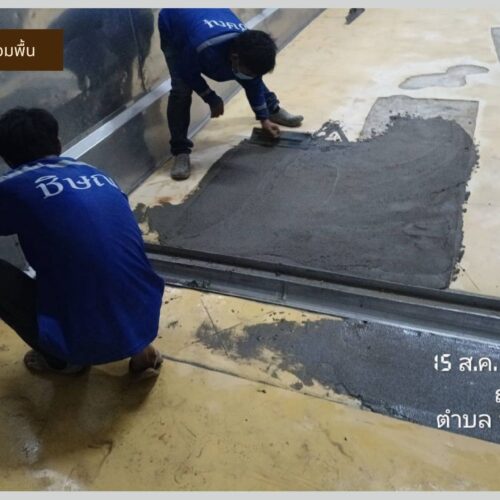 งานซ่อมพื้นด้วย PU Concrete 6 มม. พร้อมงานเคลือบสีบัว