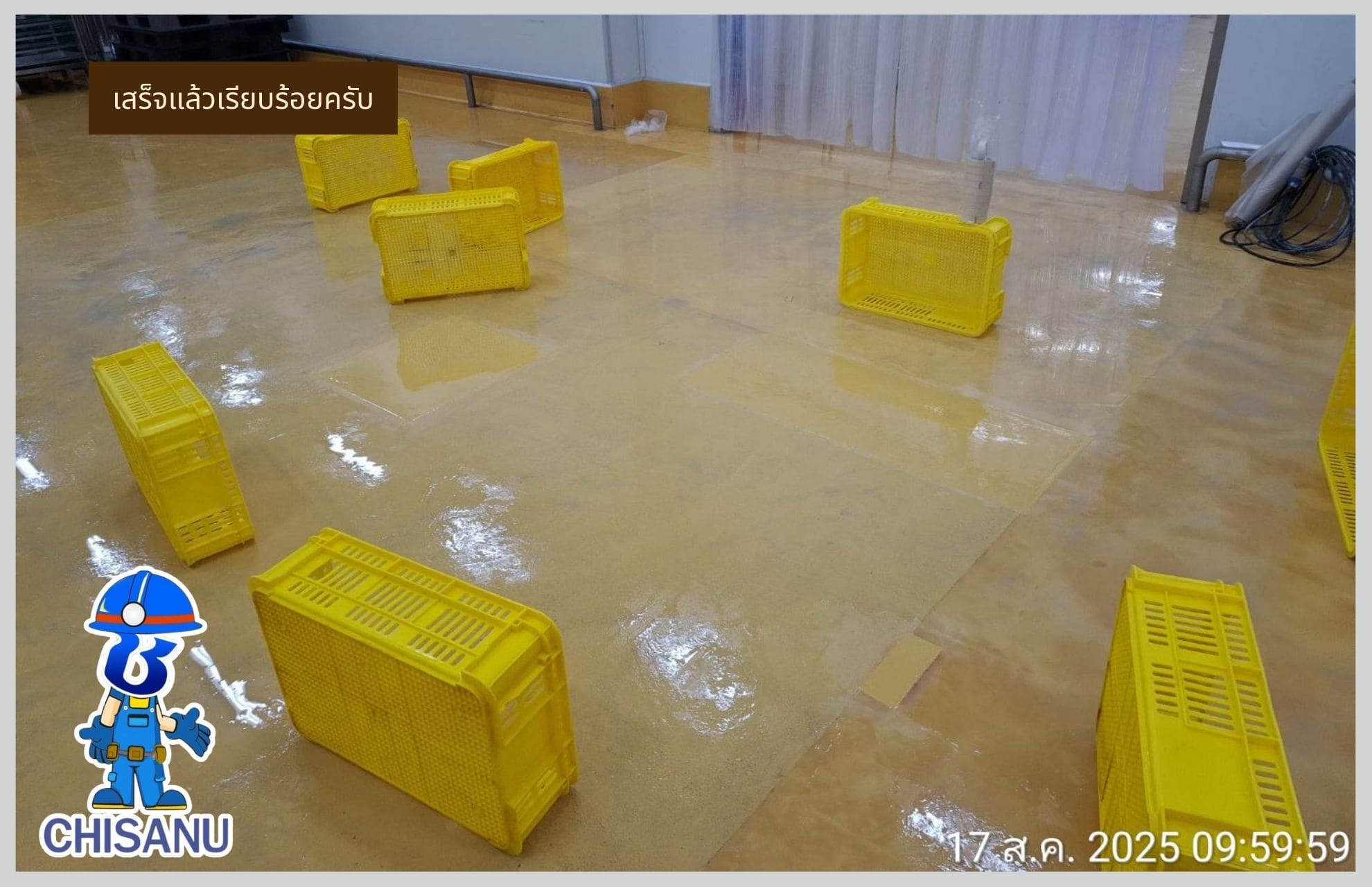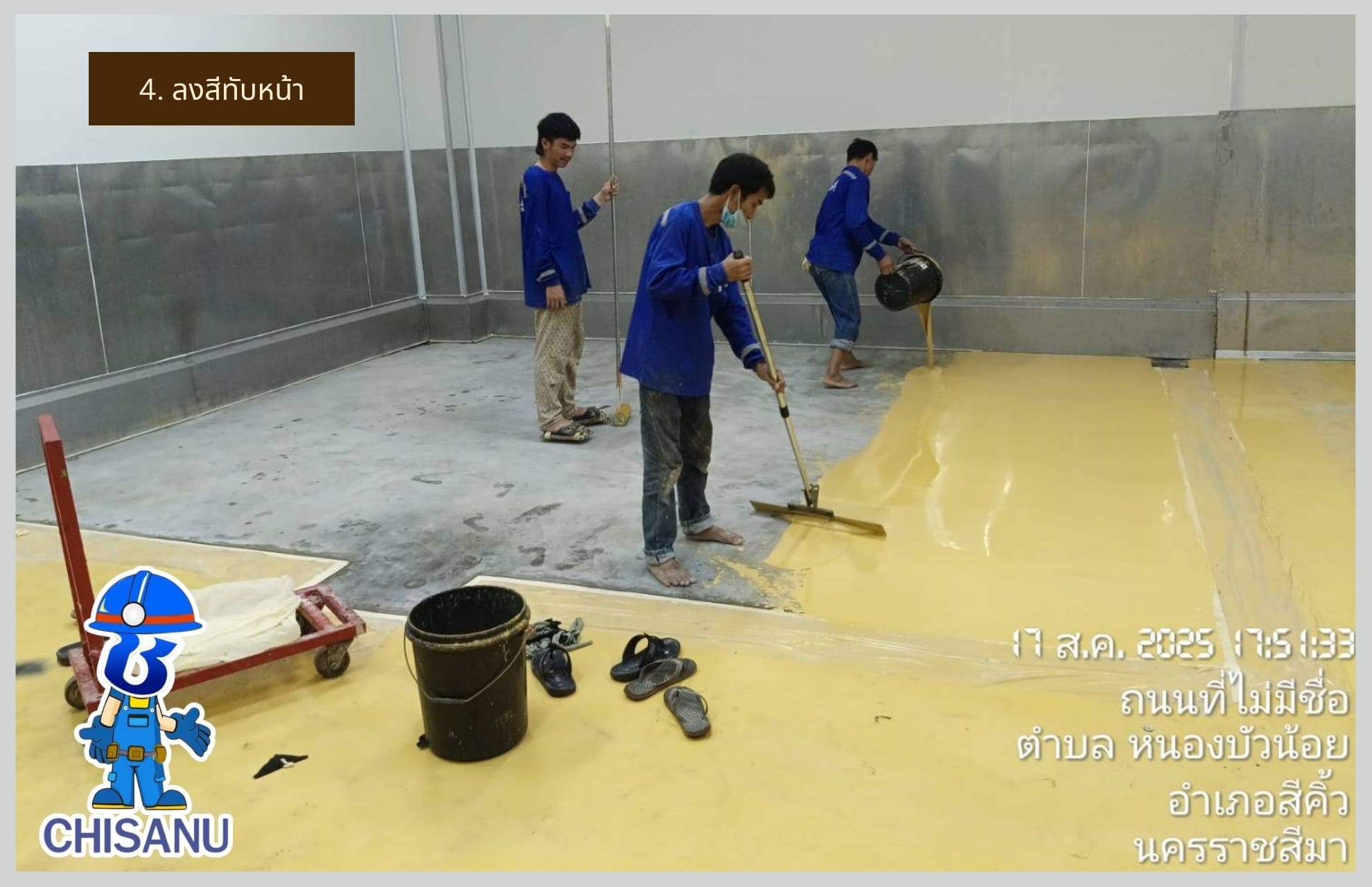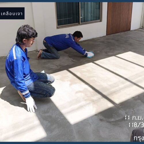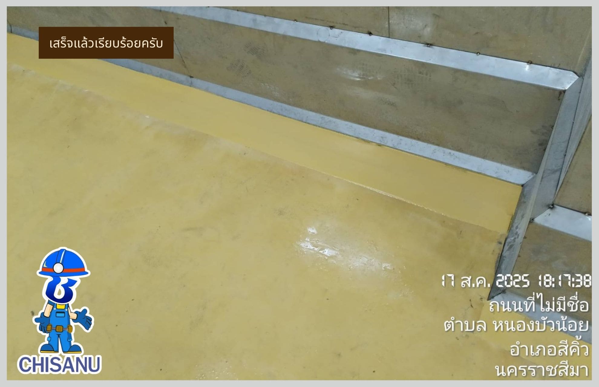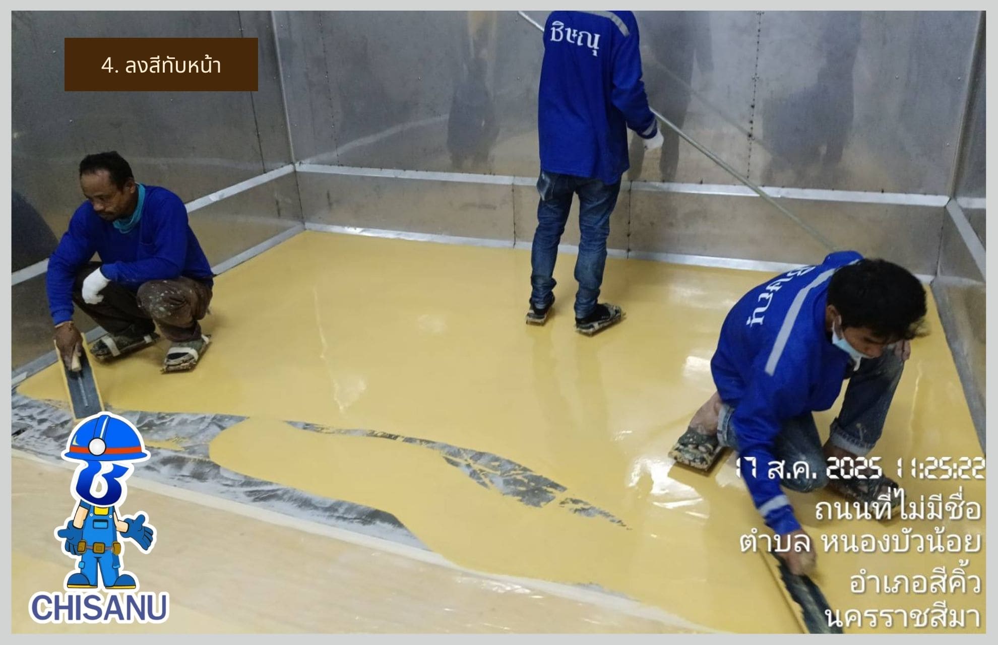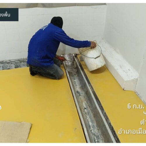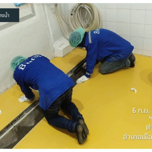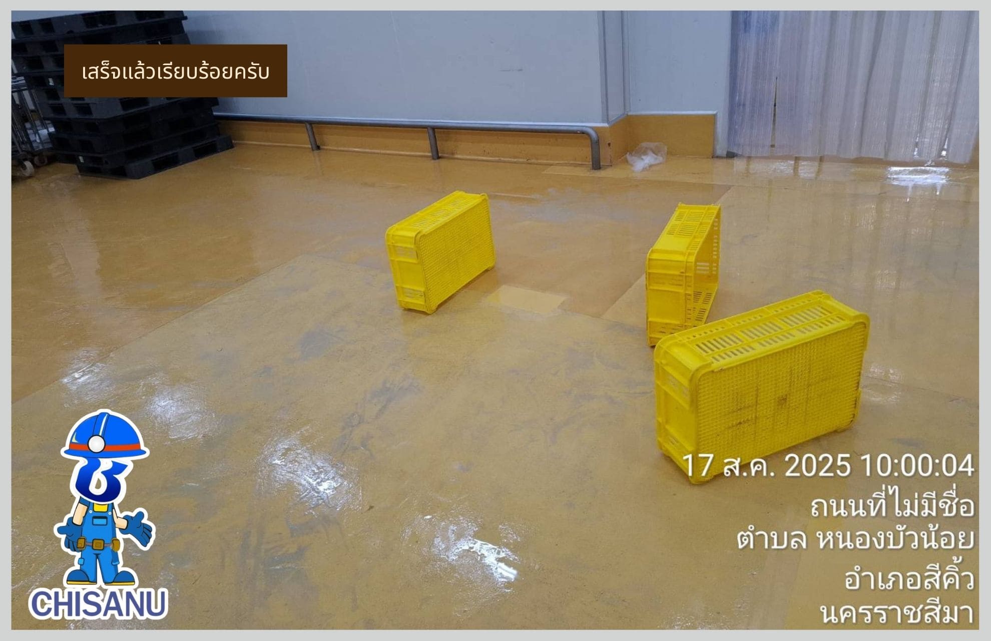 งานซ่อมพื้นด้วย PU Concrete 6 มม. พร้อมงานเคลือบสีบัว