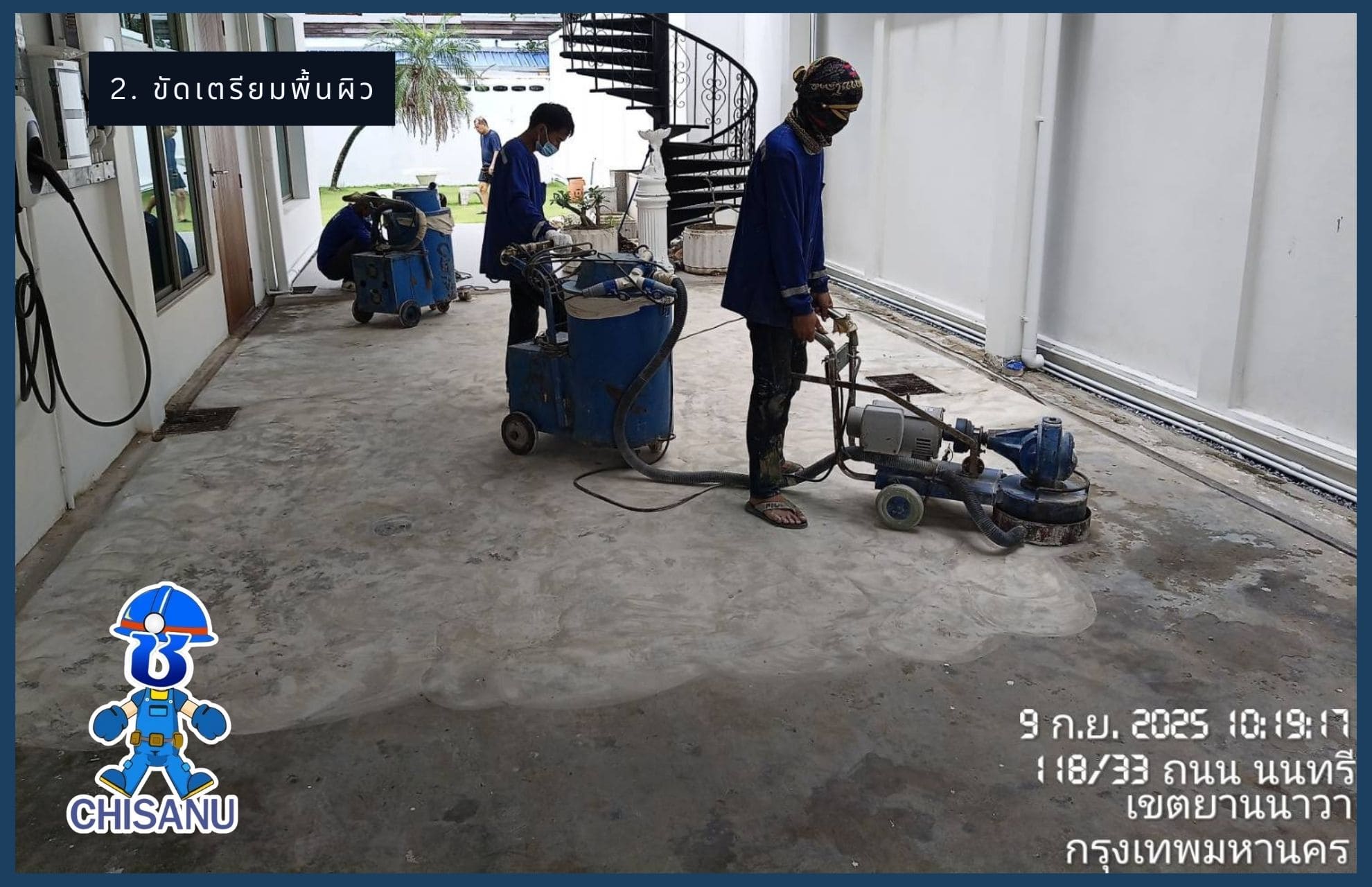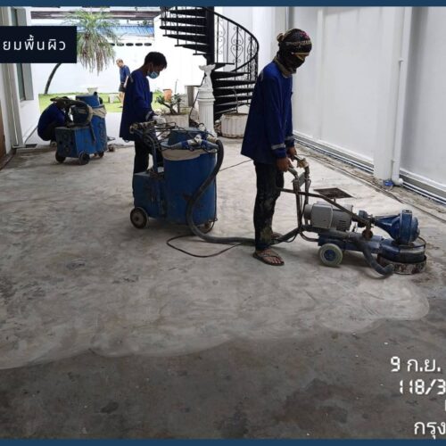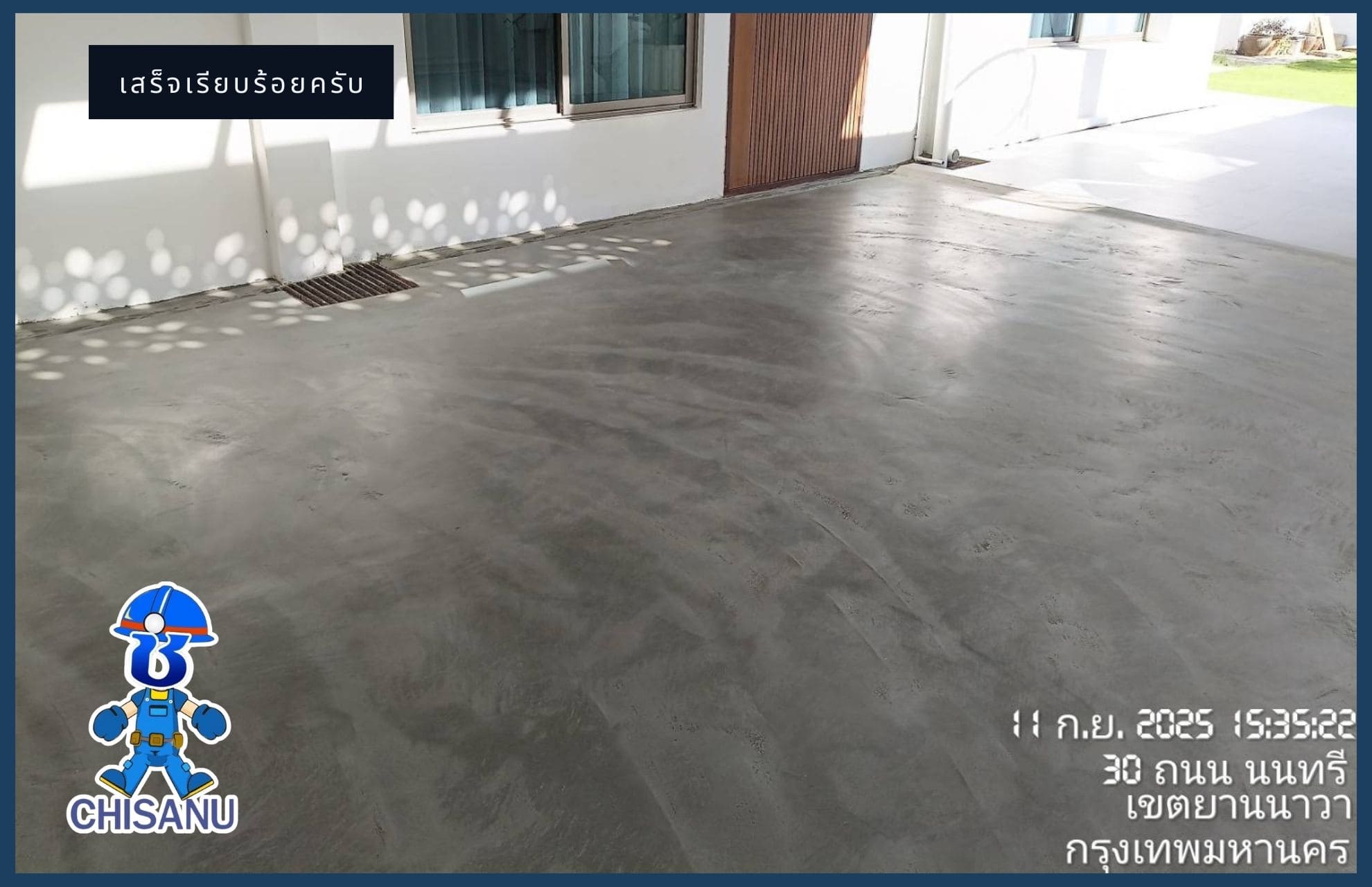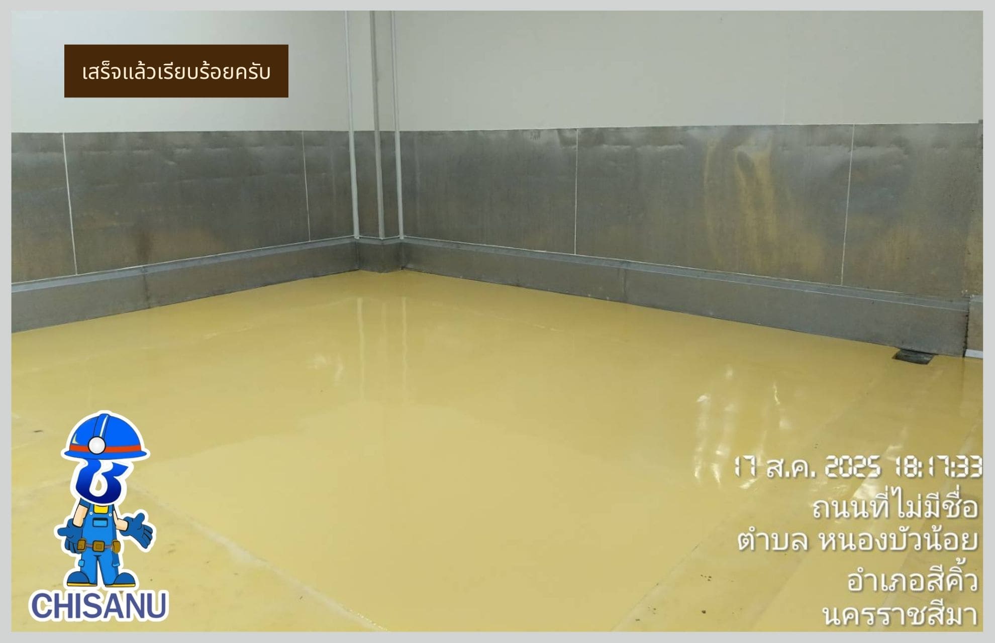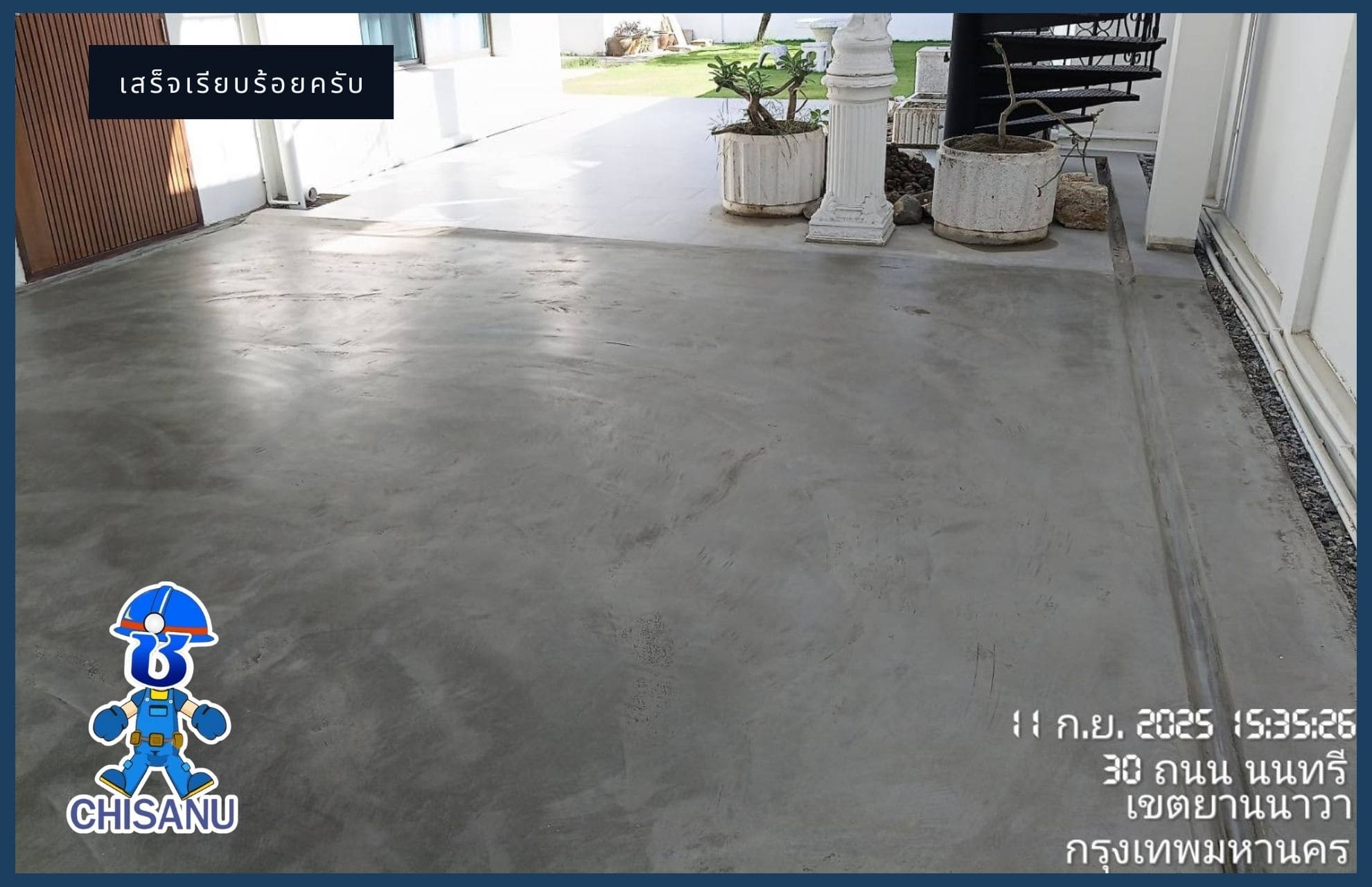 งานซ่อมพื้นด้วย PU Concrete 6 มม. พร้อมงานเคลือบสีบัว
