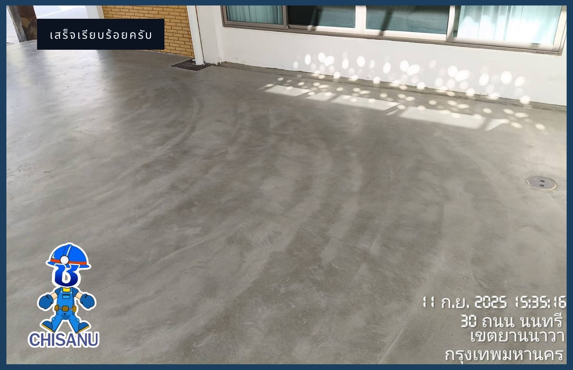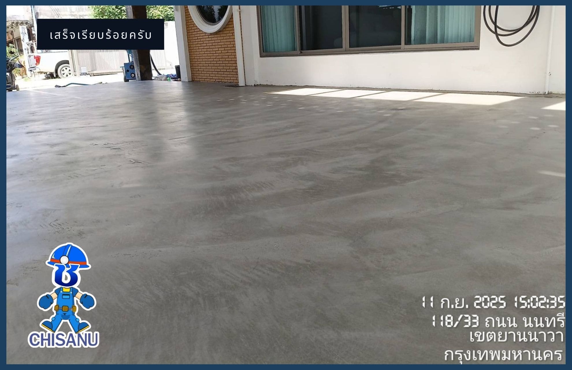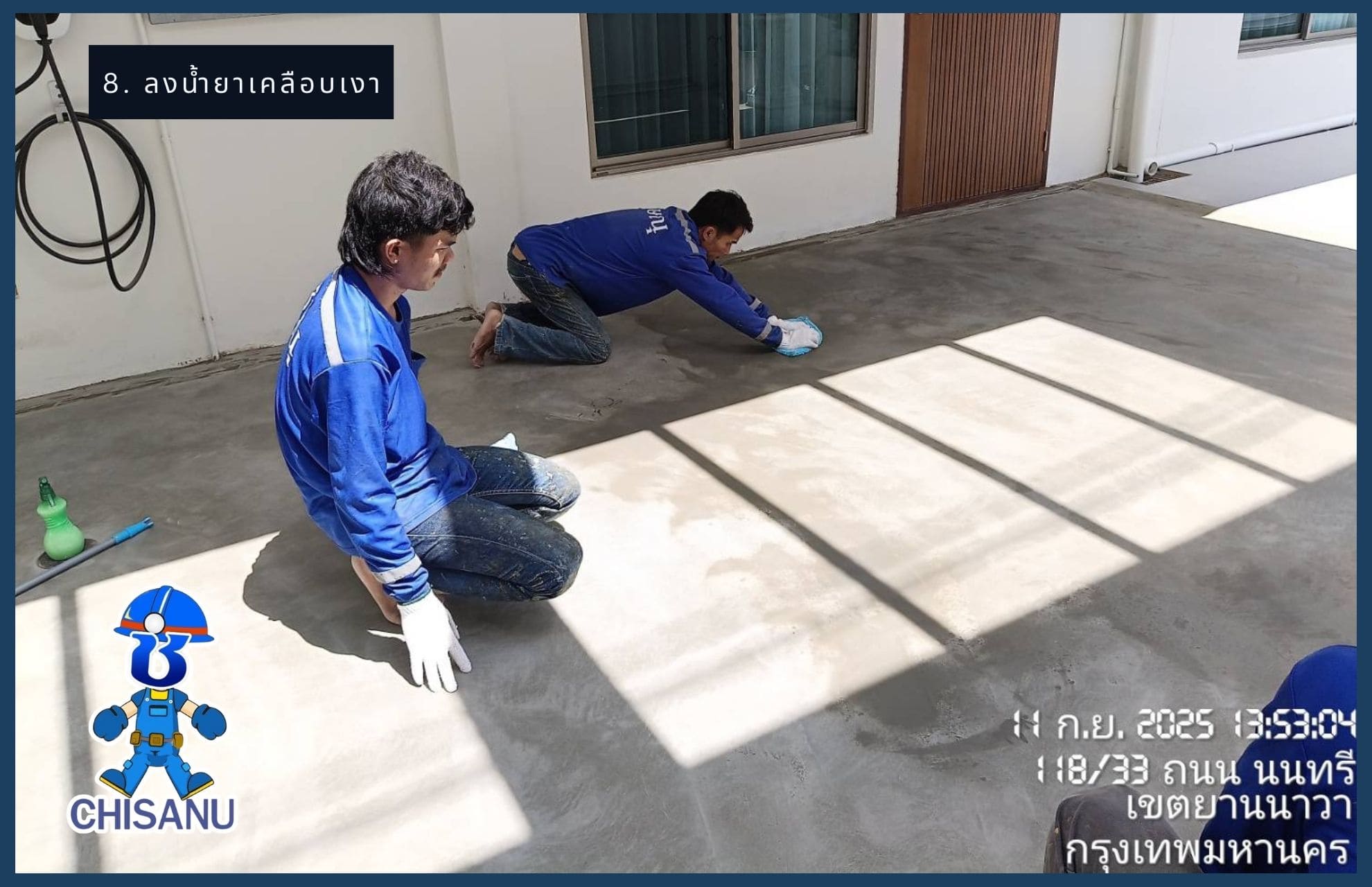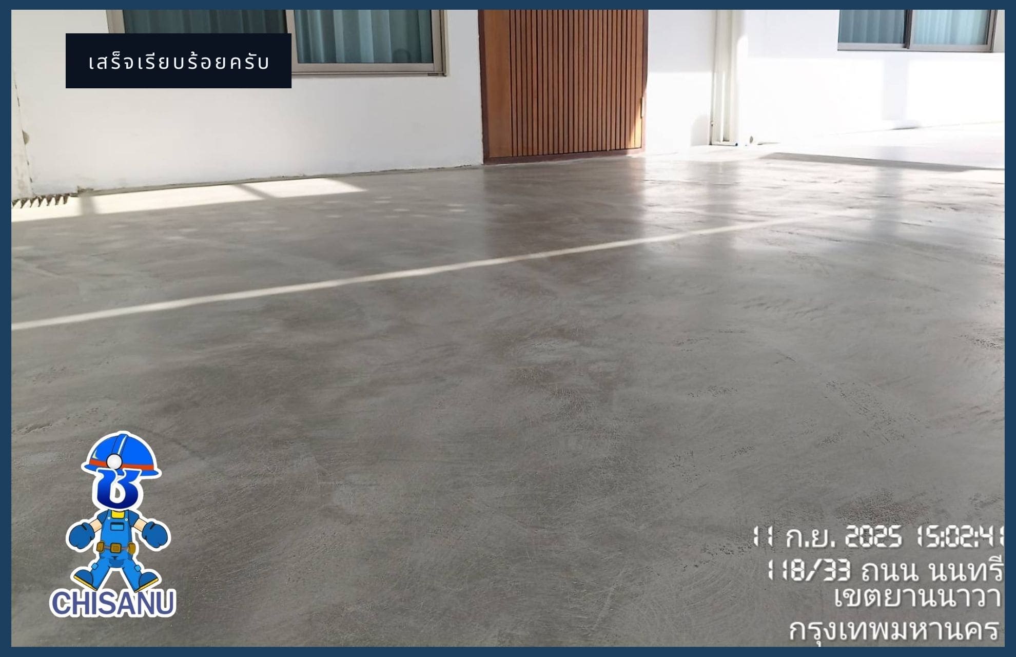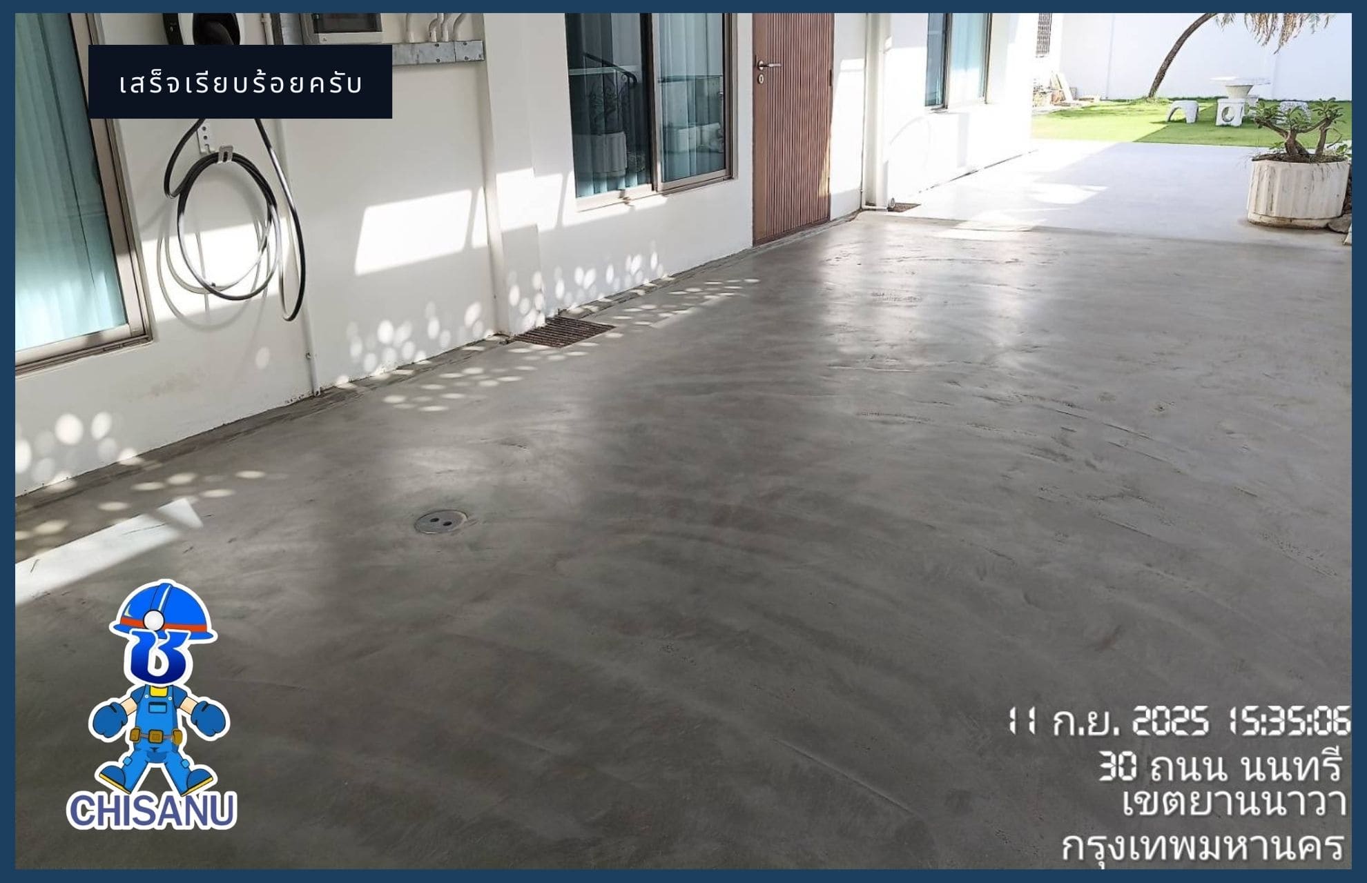 งานซ่อมพื้นด้วย PU Concrete 6 มม. พร้อมงานเคลือบสีบัว