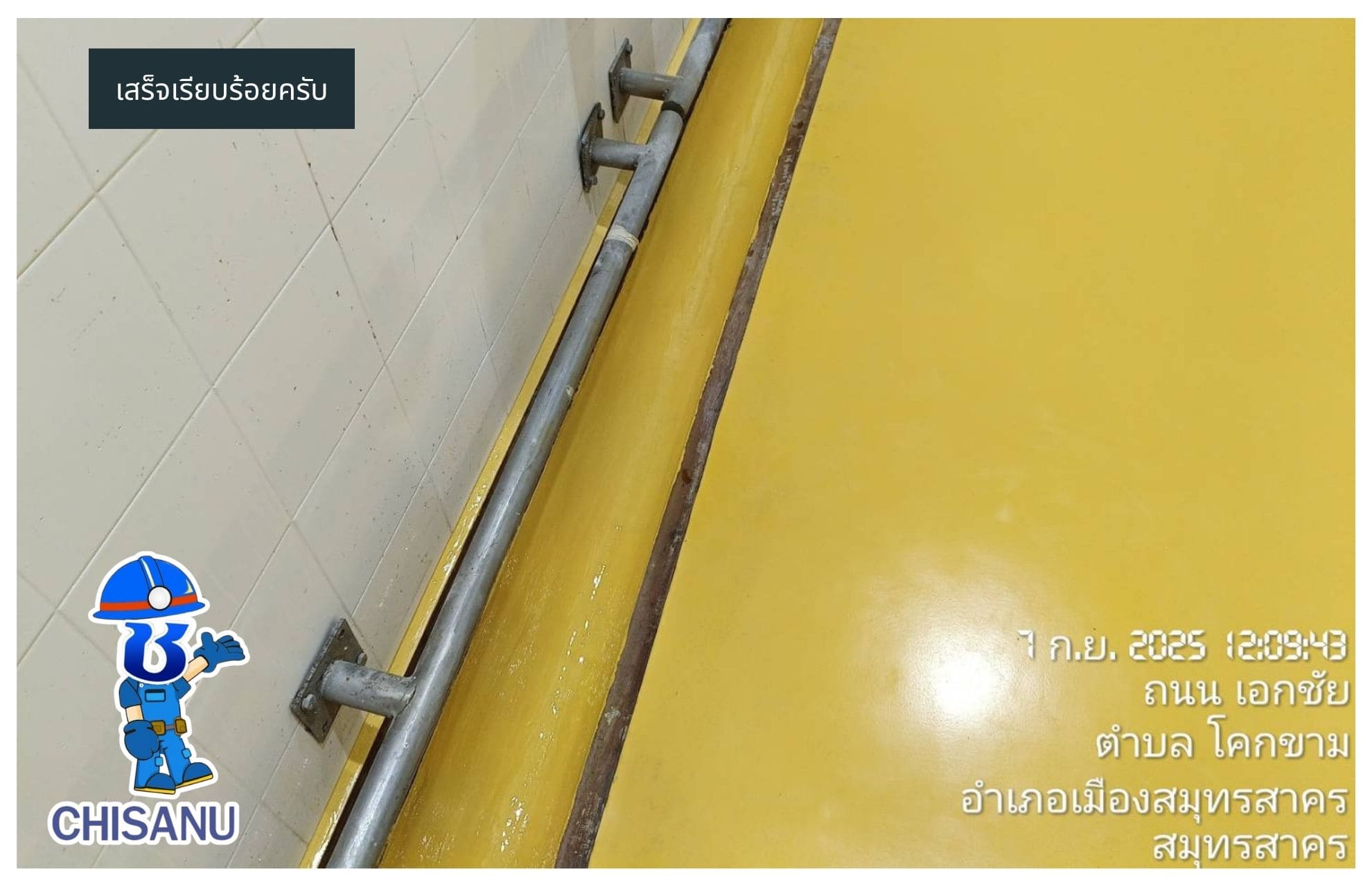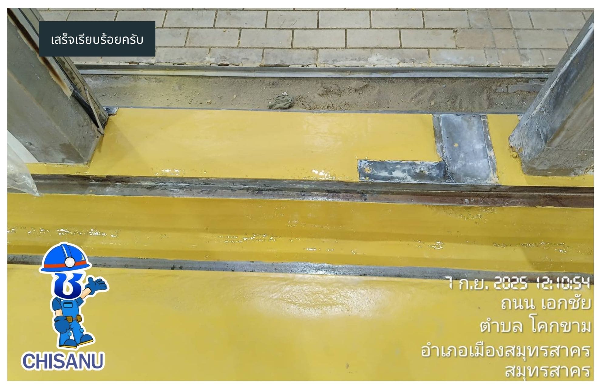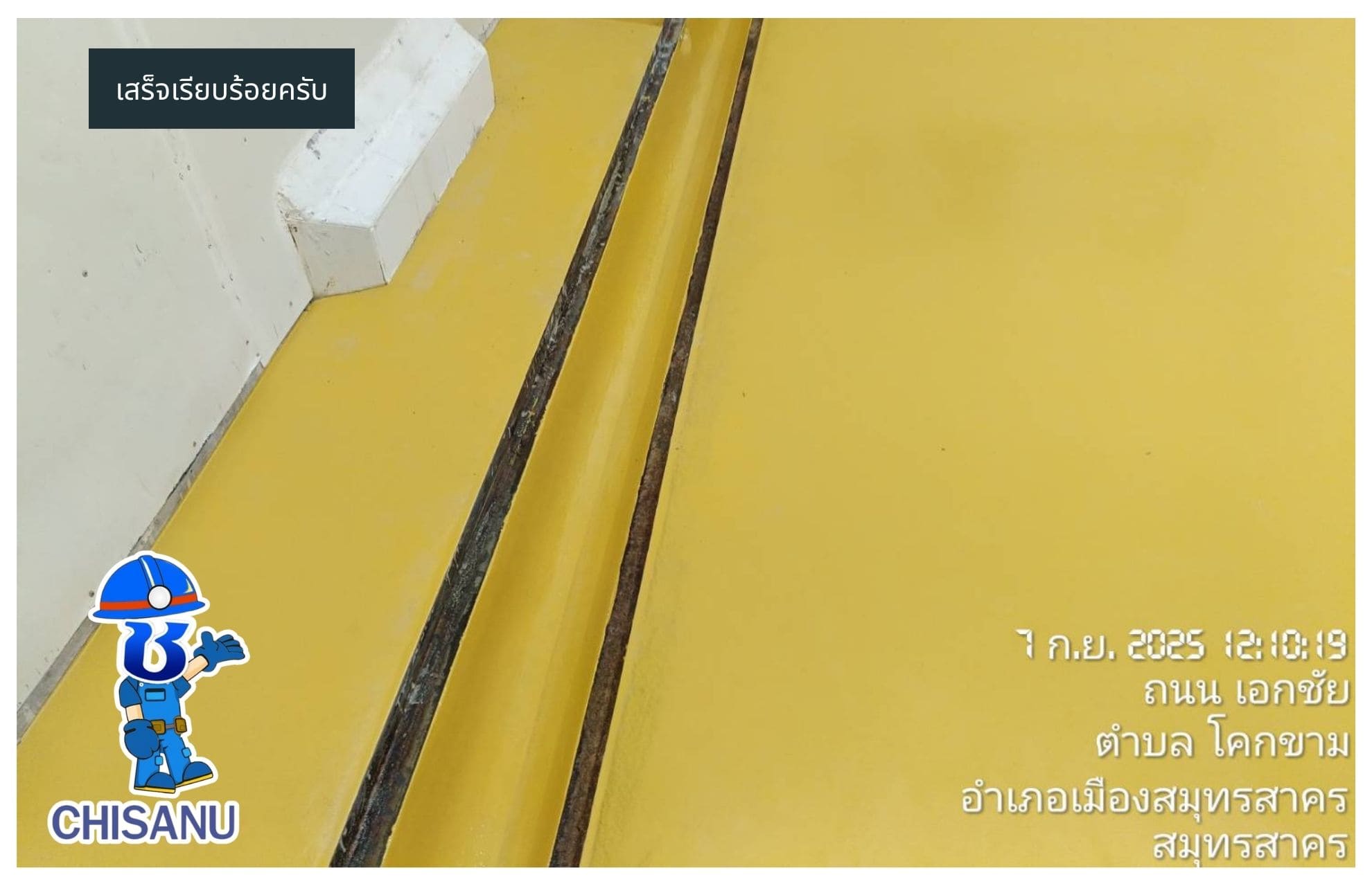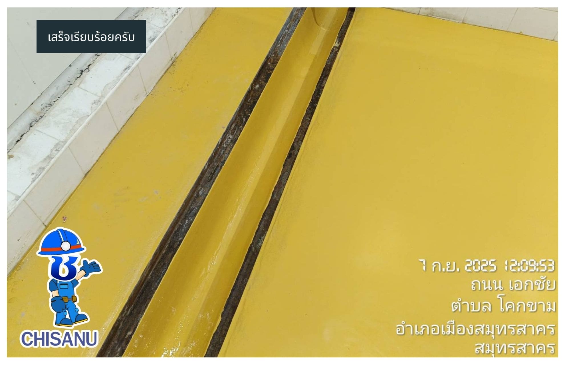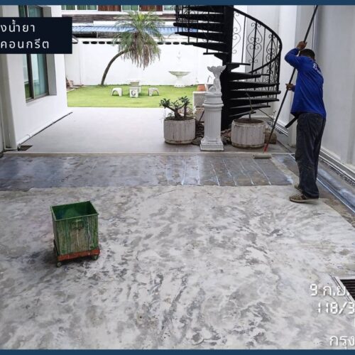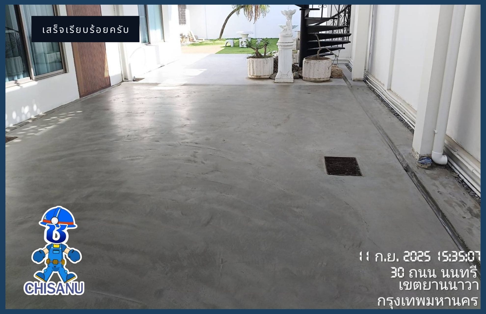 งานซ่อมพื้นด้วย PU Concrete 6 มม. พร้อมงานเคลือบสีบัว
