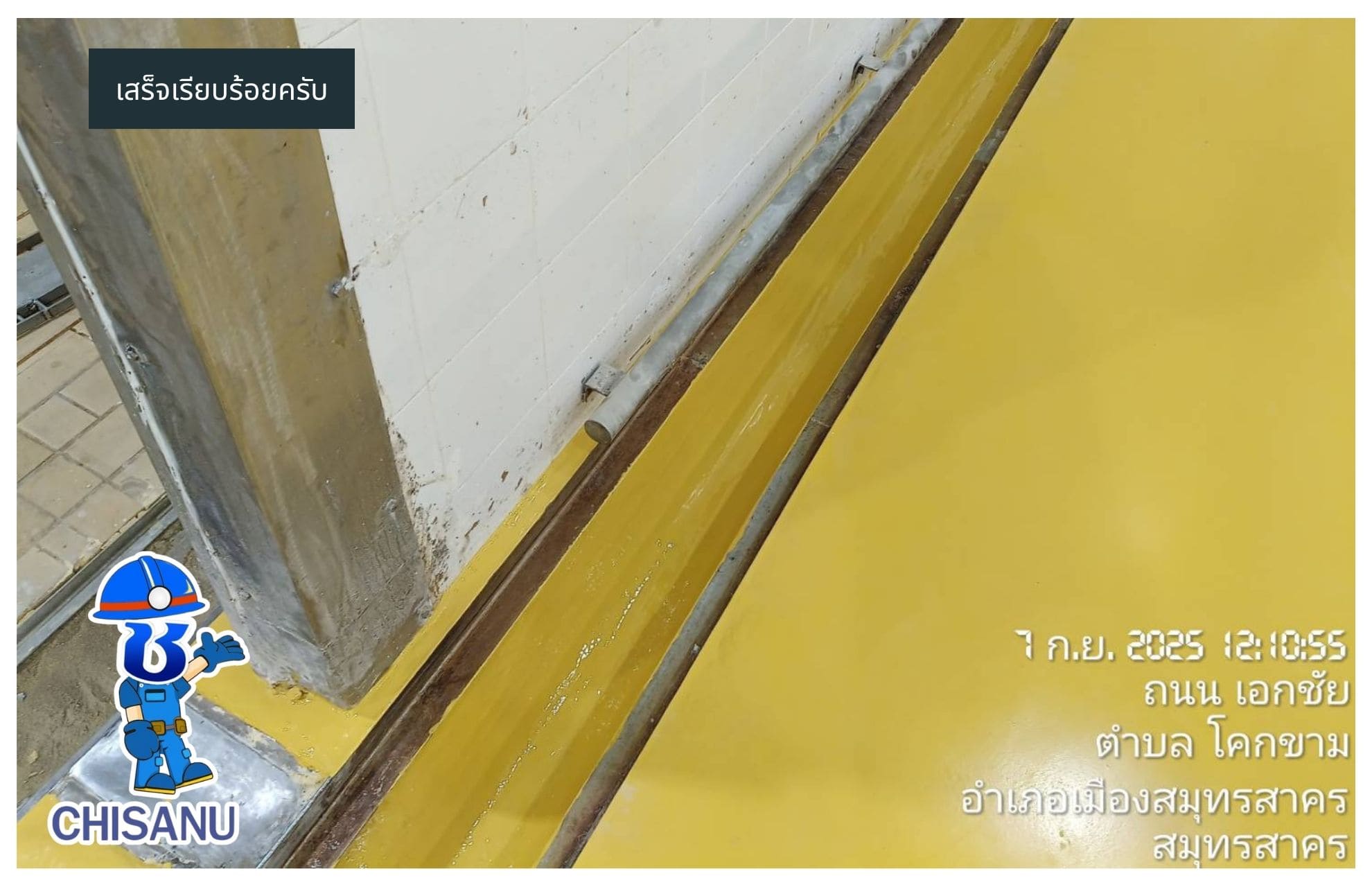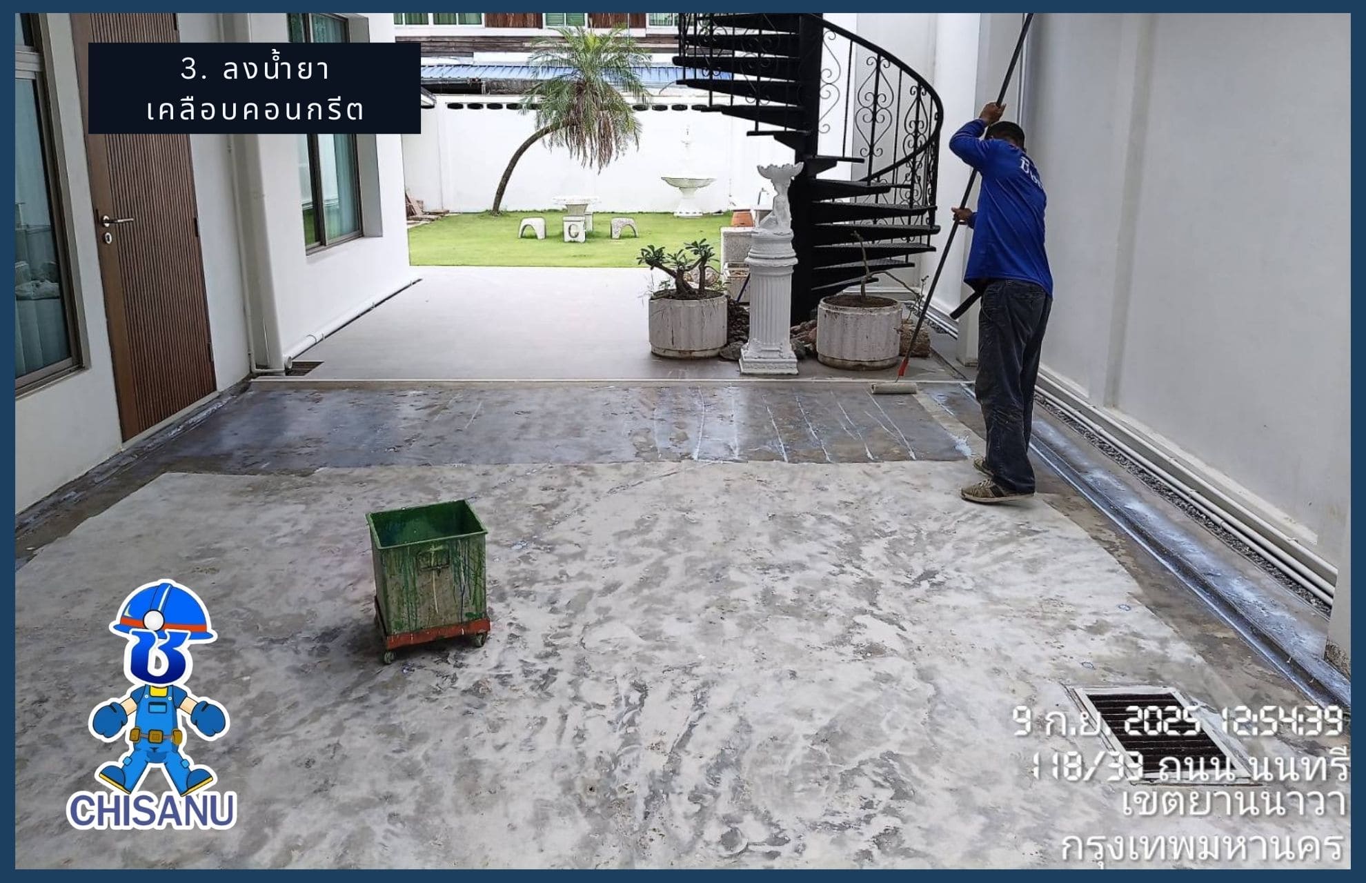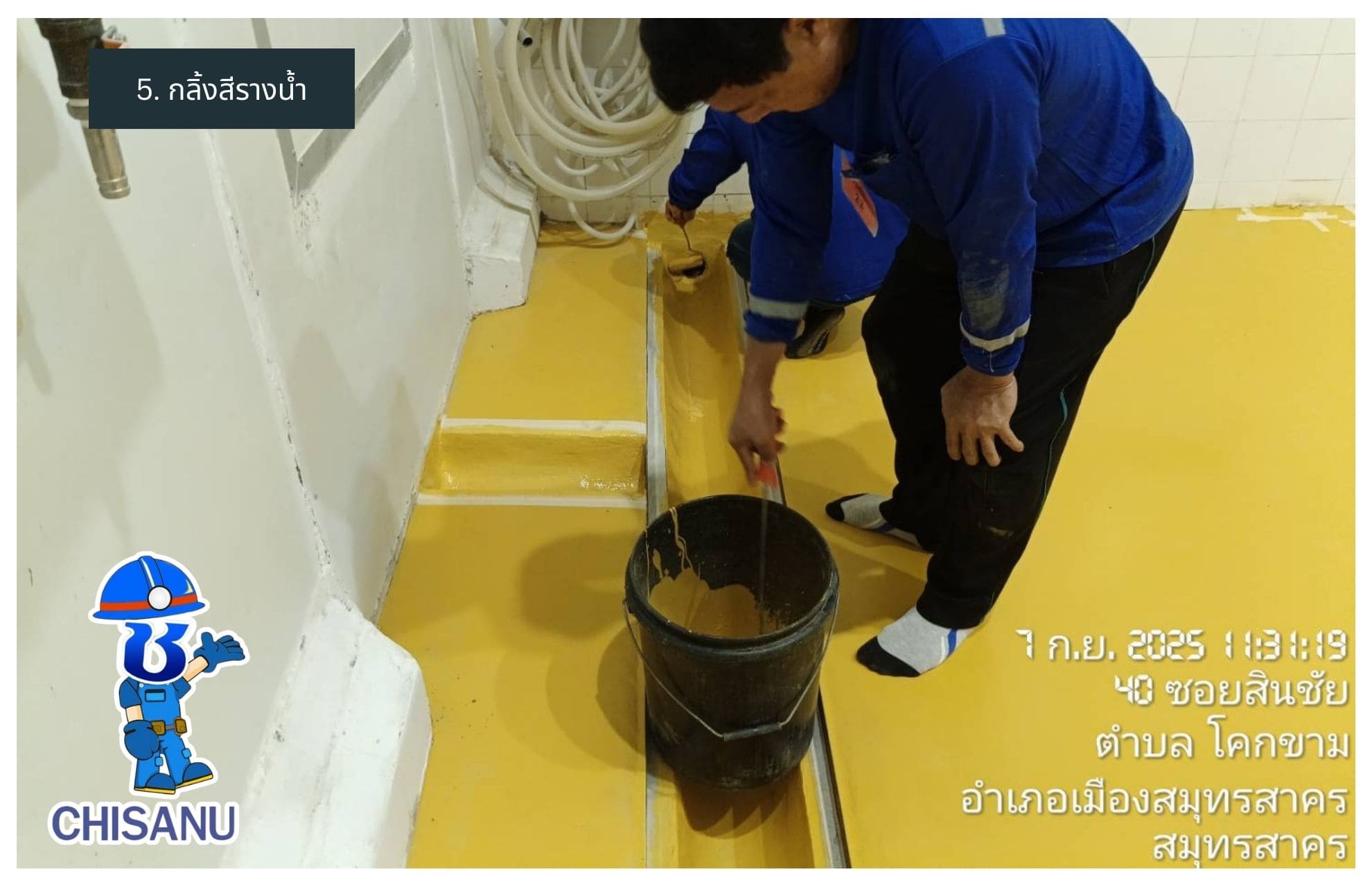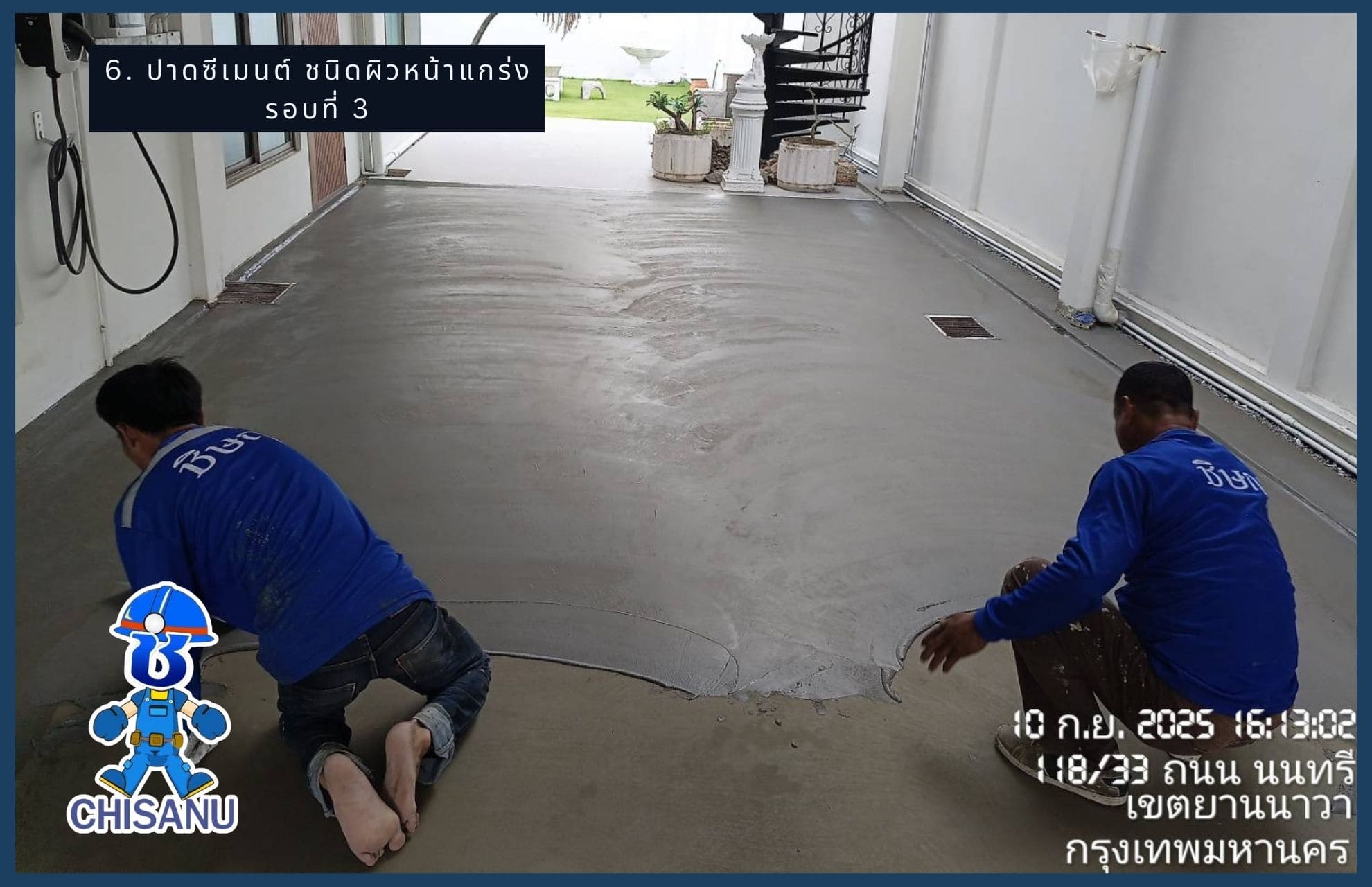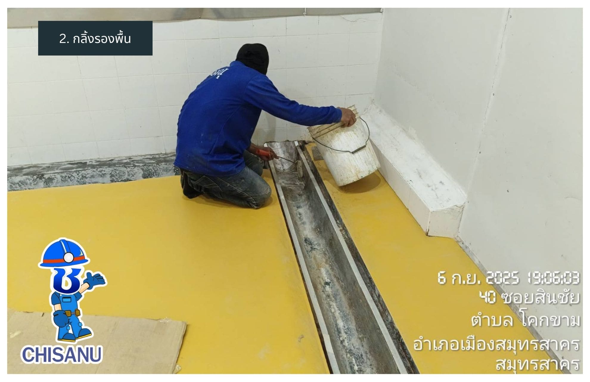 งานซ่อมพื้นด้วย PU Concrete 6 มม. พร้อมงานเคลือบสีบัว